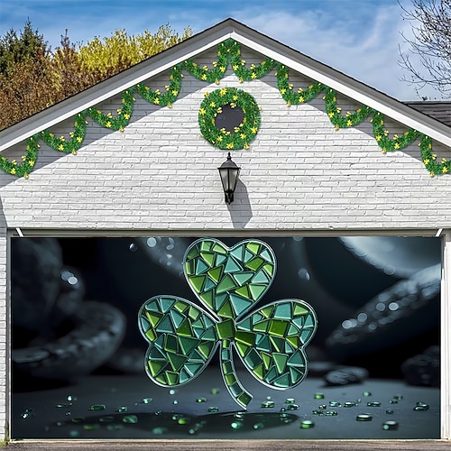 Festa di San Patrizio arazzo Copertura per porta del garage Grande appeso Trifoglio Carino Moderno 3D Da serata All'aperto Vacanze Sfondi di ripresa Yarda Arredamento per la casa