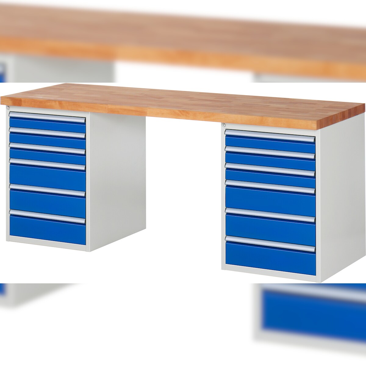PROREGAL Werkbank Serie 7000 - Modell 7517 | HxBxT 84x300x70cm | 14x Schublade | Schubladenmaße 4x60 + 4x90 + 4x120 + 2x180mm