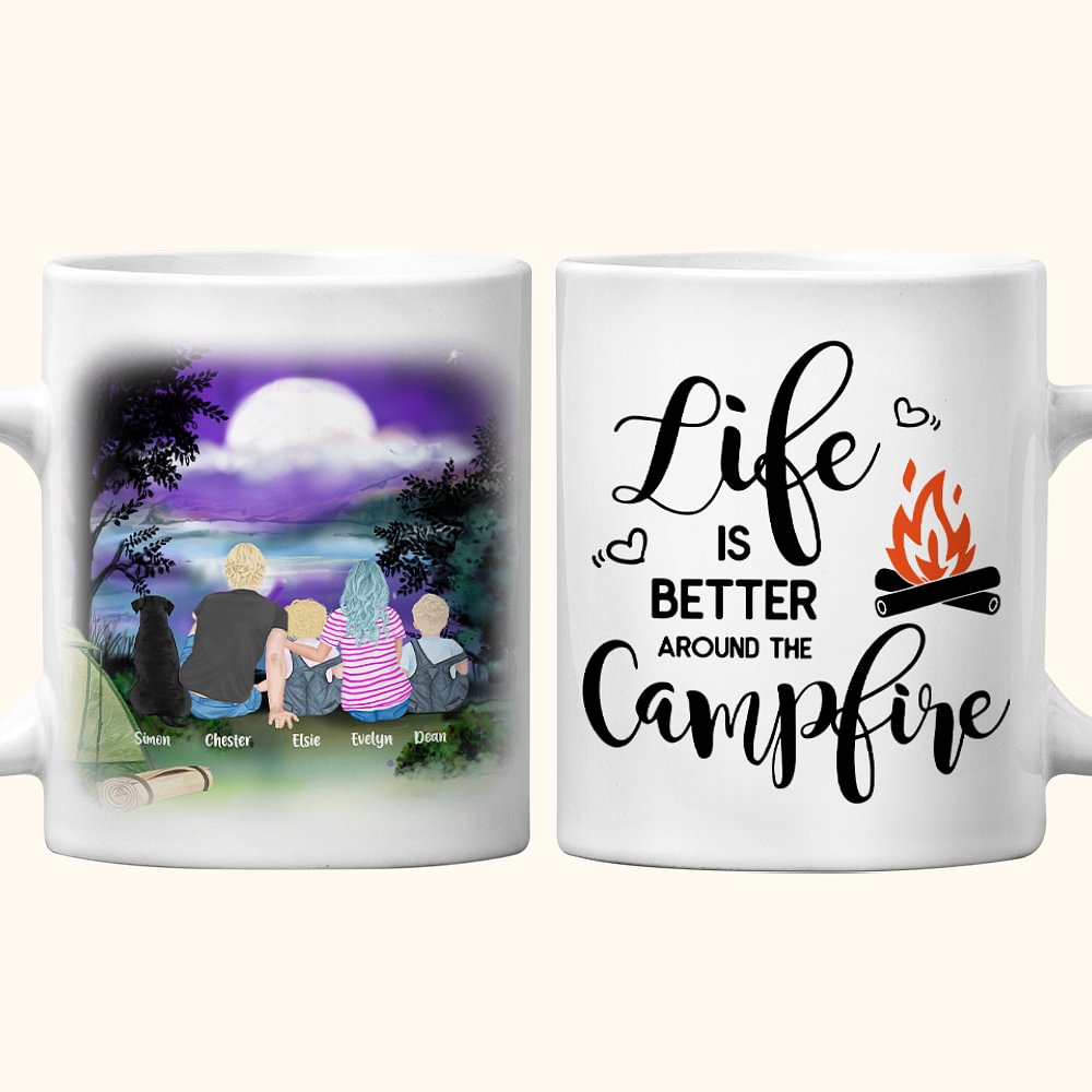 Personalizzato Life Is Better Around The Campfire Near a Lake Tazza in ceramica bianca Tazza da viaggio in campeggio per la famiglia Regalo per l'amic