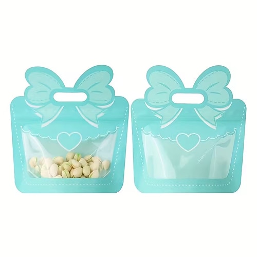 Confezione da 12 sacchetti regalo per caramelle con fiocco, sacchetti di plastica autosigillanti con manico, sacchetti per snack con fiocco per caramelle, bomboniere, biglietti di auguri imballaggio