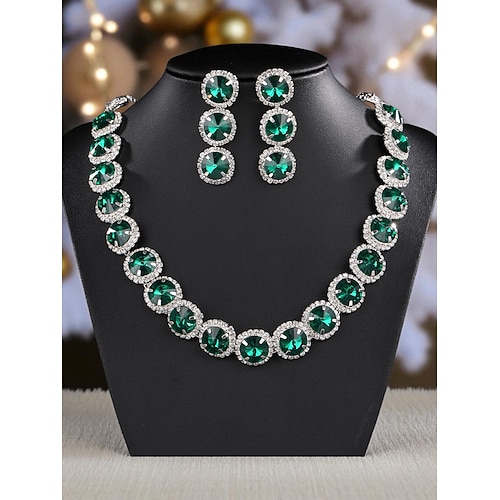 set di gioielli da donna con strass verde smeraldo per la festa di Natale, elegante set di collana di cristallo e orecchini pendenti per serate formali celebrazioni delle feste