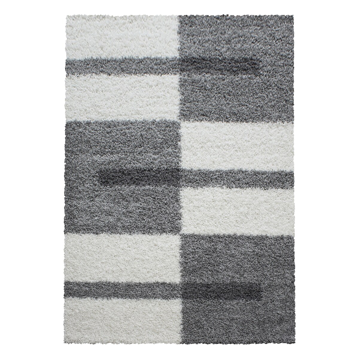 Teppich Hochflor Shaggy Karo Design Polypropylen Wohnzimmer Hellgrau Rechteckig 120x170 | Kadima Design