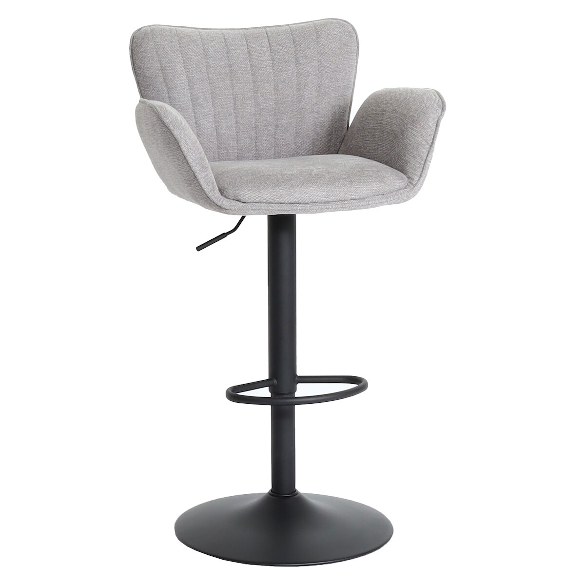 Mendler Barhocker HWC-M67, Drehstuhl Barstuhl, mit Armlehne Fußablage drehbar Stoff/Textil Eisen FSC® ~ hellgrau Fuß schwarz