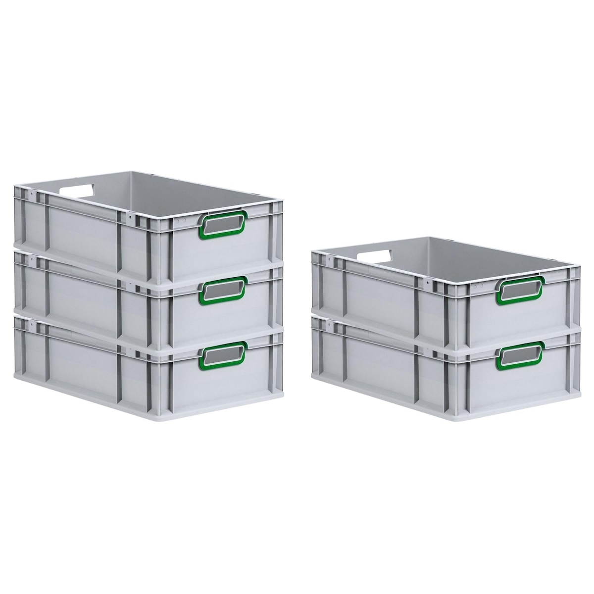 PROREGAL SuperSparSet 5x Eurobox NextGen Color, HxBxT 17x40x60cm, 34 Liter, Griffe grün offen, Grau, Eurobehälter, Box, Transportbehälter