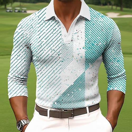 Per uomo A righe Polo Camicie termiche Manica Lunga Magliette polo Bavero Casual Athleisure Ferie Abbigliamento quotidiano Stampa 3D Autunno Inverno Blu Bianco Verde