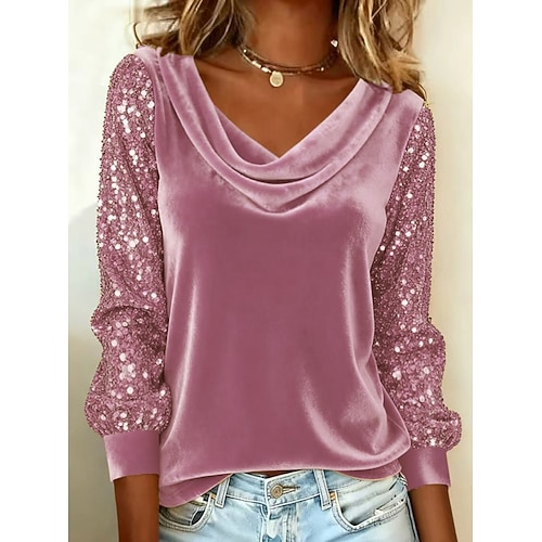 Per donna Strass scintillante Da serata Glitter Brillante Elegante Manica Lunga Top con spalle scoperte Top Regolari Quotidiano Ferie Paillettes Argento Nero Rosa Vino Oro Primavera Autunno
