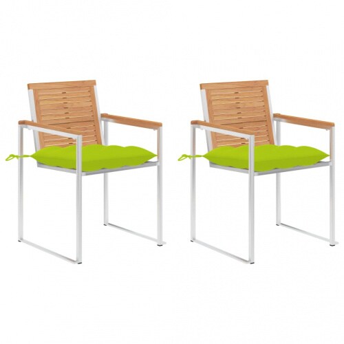 Gartenstühle mit Kissen 2 Stk. Massivholz Teak und Stahl V2 | vidaXL : Farbe - Hellgrün