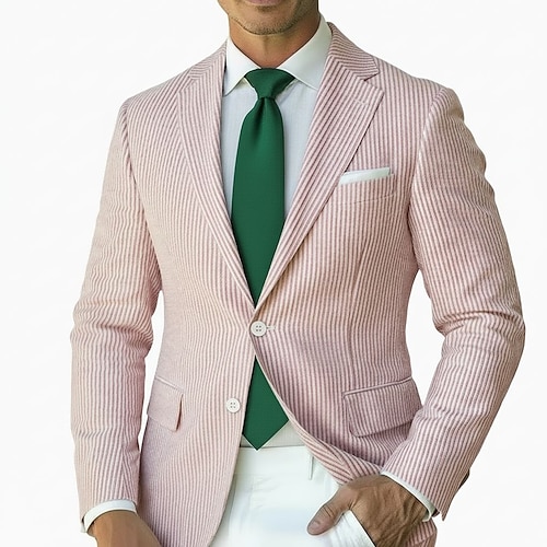 Per uomo Giacca blazer Colletto ad incastro Festa di San Patrizio A righe Blazer in seersucker Rosa Azzurro cielo Verde salvia Vestibilità su misura Monopetto Due Bottoni