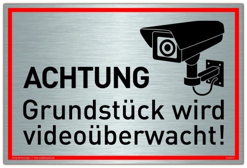 Schild Achtung Grundstück wird videoüberwacht! Silber | stabiles Alu Schild mit UV-Schutz 30 x 20 cm