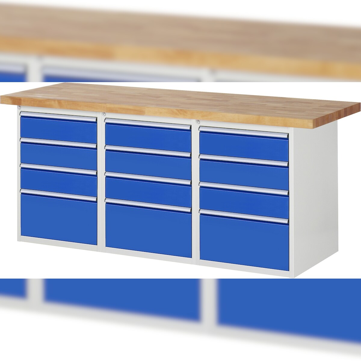 PROREGAL Werkbank Serie 7000 - Modell 7510 | HxBxT 89x250x90cm | 8x Schublade + 1x Schrank inkl. SchPROREGALbstock | Schubladenmaße 6x150 + 2x270mm