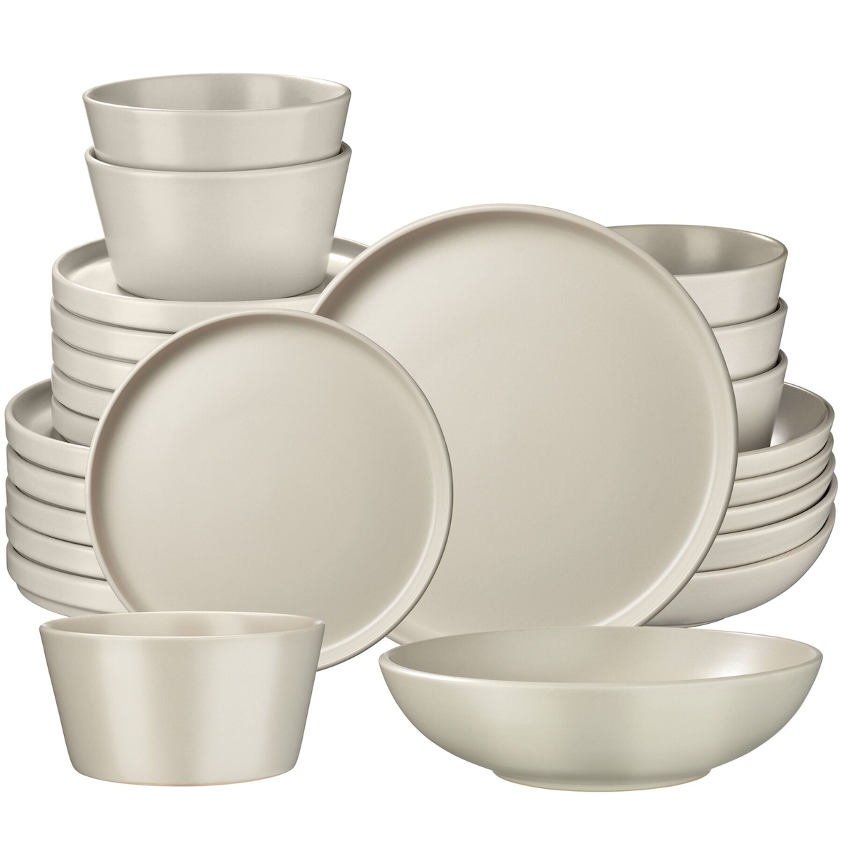 TecTake GmbH tectake Geschirrset Una, aus Steingut, für 6 Personen, 24 teilig, taupe