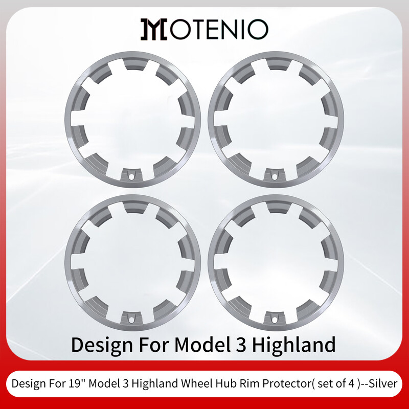 MOTENIO Lot de 4 enjoliveurs pour Tesla Model 3 Highland (2023-2026), 19 pouces, plastique ABS, durable, argenté, accessoires de remplacement, installation facile