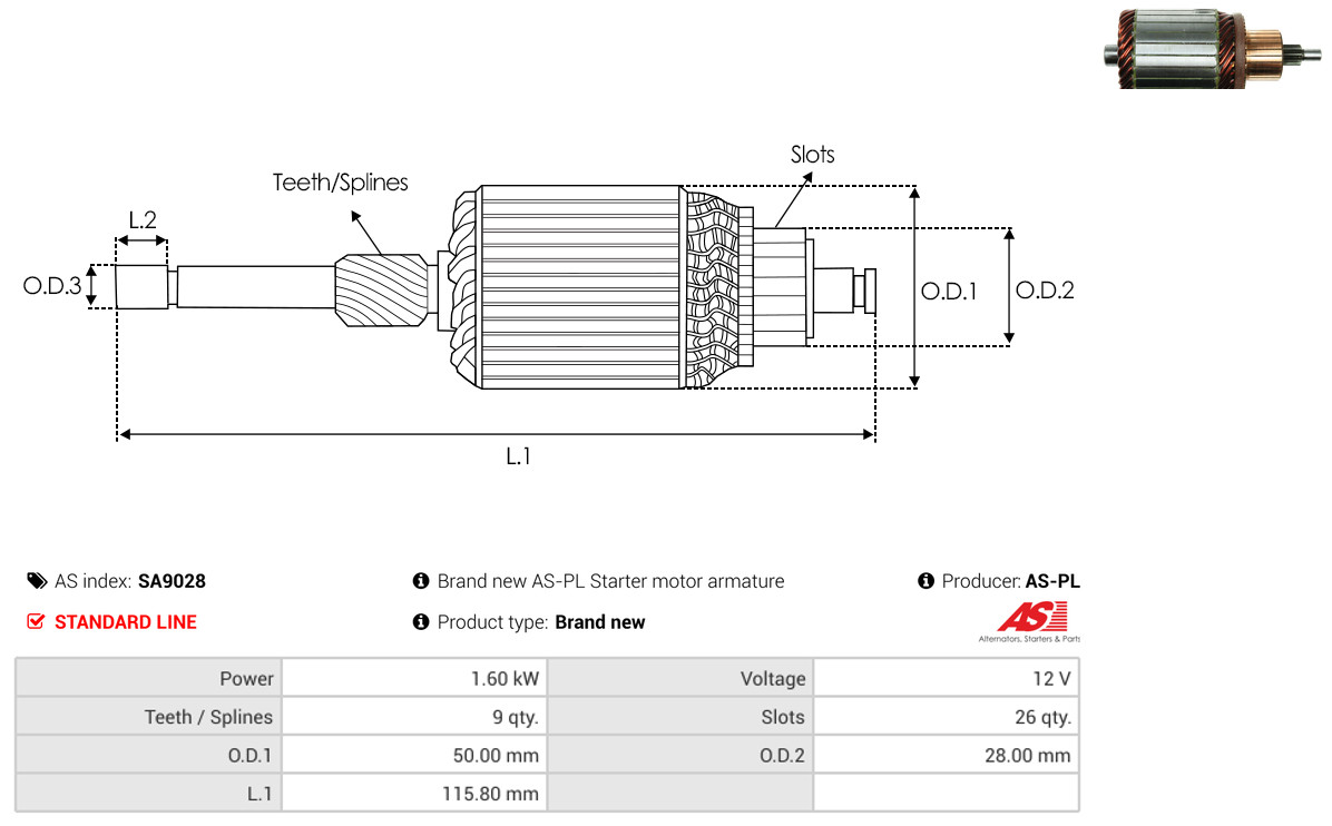 AS-PL Anker, Starter Universal 12V 50,00mm für HONDA 31207-RNA-A51 31207-RRA-A51 31207-RAA-A51 SA9028