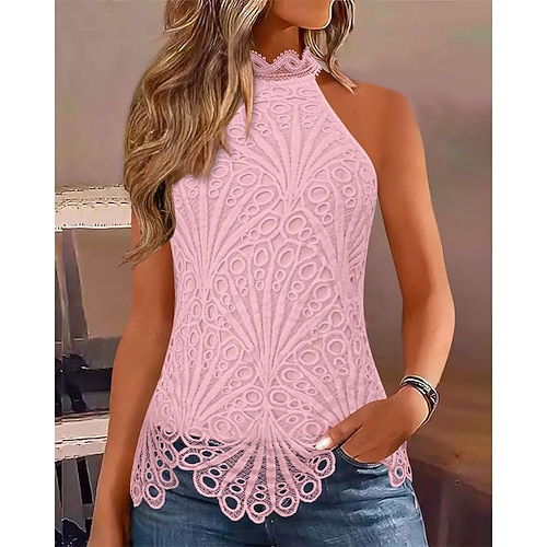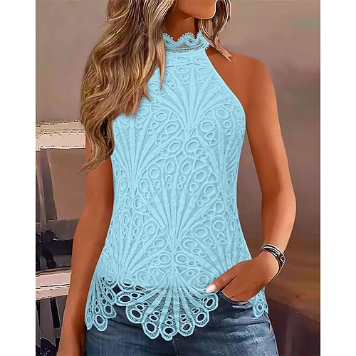 Per donna Top estivi Blusa Top Eleganti Top in pizzo Tinta unica Elegante Signore Classico Senza Maniche Collo Alto Top Regolari Quotidiano Lavoro Uscire Arricciato Pizzo Patchwork Blu Nero Bianco