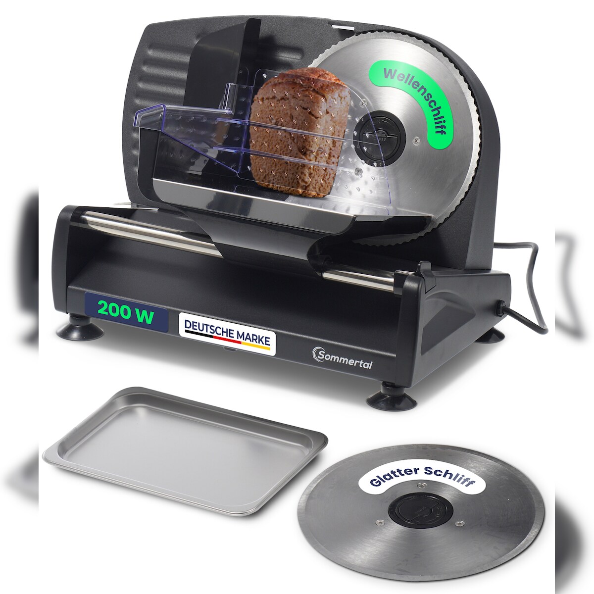 Sommertal Allesschneider AS190 Dual 200W Edelstahlmesser mit Wellenschliff und Glatten Schliff, platzsparend