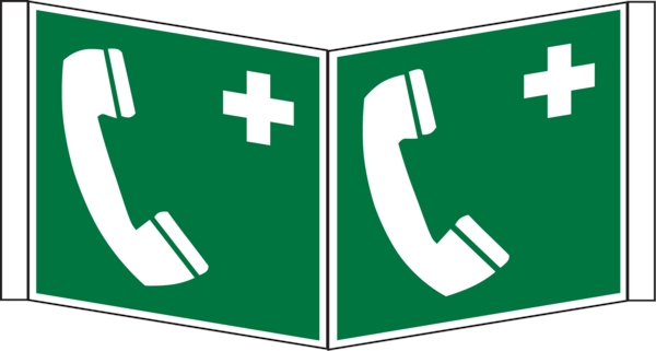 Rettungszeichen, Winkelschild Notruftelefon E004 - ASR A1.3 (DIN EN ISO 7010) - 150x150x1 mm Kunststoff nachleuchtend