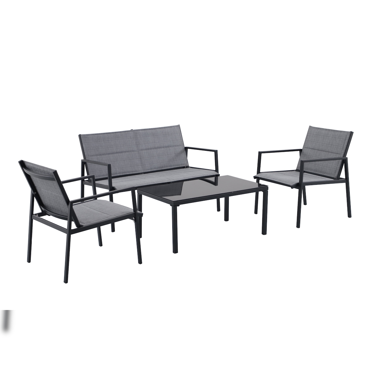 aro Outdoor Lounge 4-tlg., Stahl/Textilen-Bespannung, 2 Einzelsesseln, 1 2-Sitzer Sofa, 1 Couchtisch, schwarz/grau