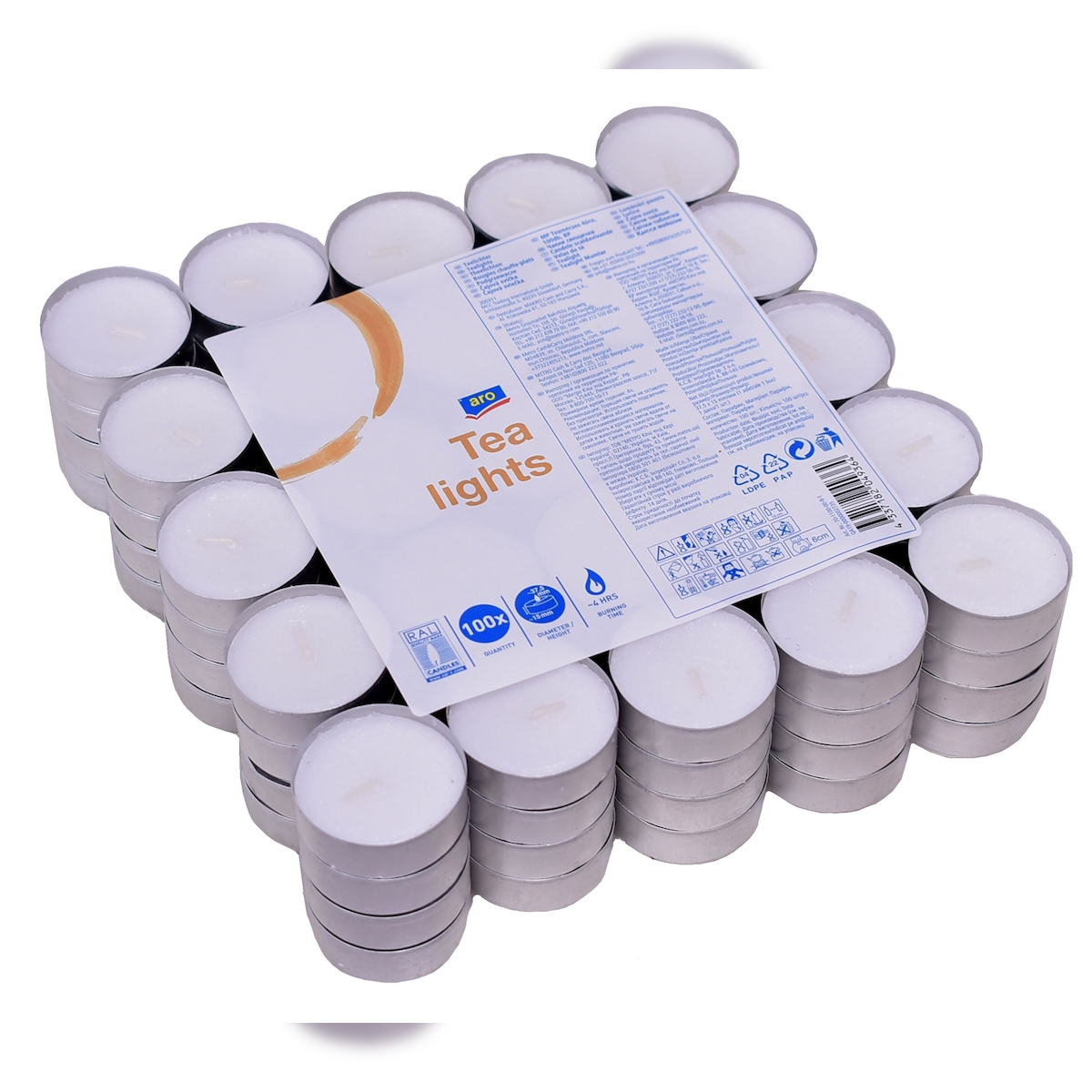 aro Teelichter, Paraffin, Ø 3.75 x 1.5 cm, 4 Stunden Brenndauer, weiß, 100 Stück