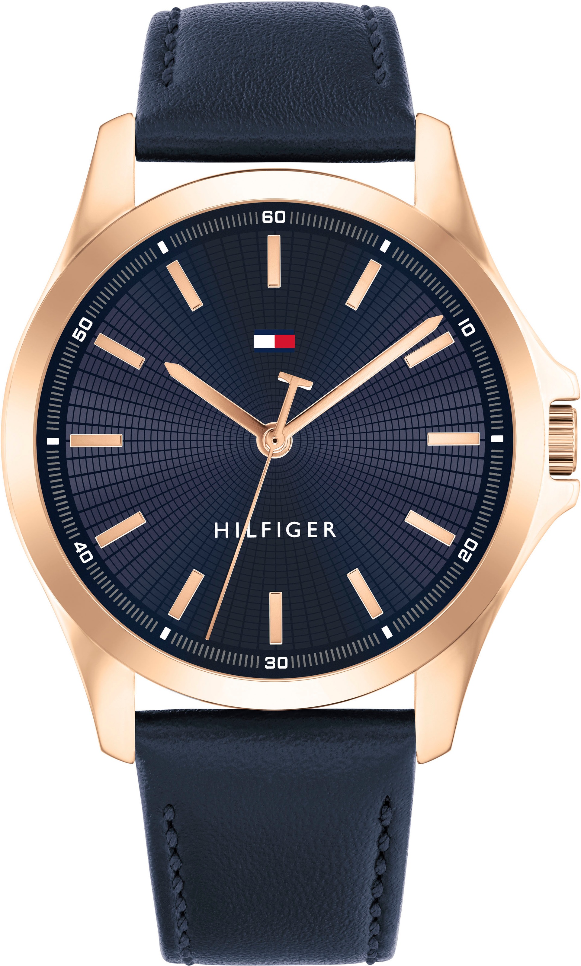Quarzuhr TOMMY HILFIGER "BRUCE", blau, Armbanduhren, Herren, Armbanduhr, Herrenuhr, Lederarmband, analog