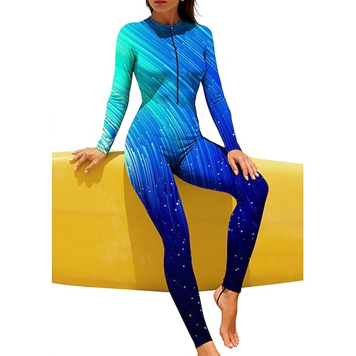 Per donna Muta da Immersione Rash Guard Costume da bagno Costume Intero Oceano Astratto Protezione Solare UV UPF50 Ultra Leggero (UL) Manica Lunga Costume da Bagno Top sottomuta Con zip Imbottitura