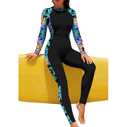Per donna Standard Top sottomuta Rash Guard completo per il corpo Costume da surf intero Floreale Tropicale Color-blocking Protezione Solare UV Coppa larga UPF50 Manica Lunga Integrale Costume da