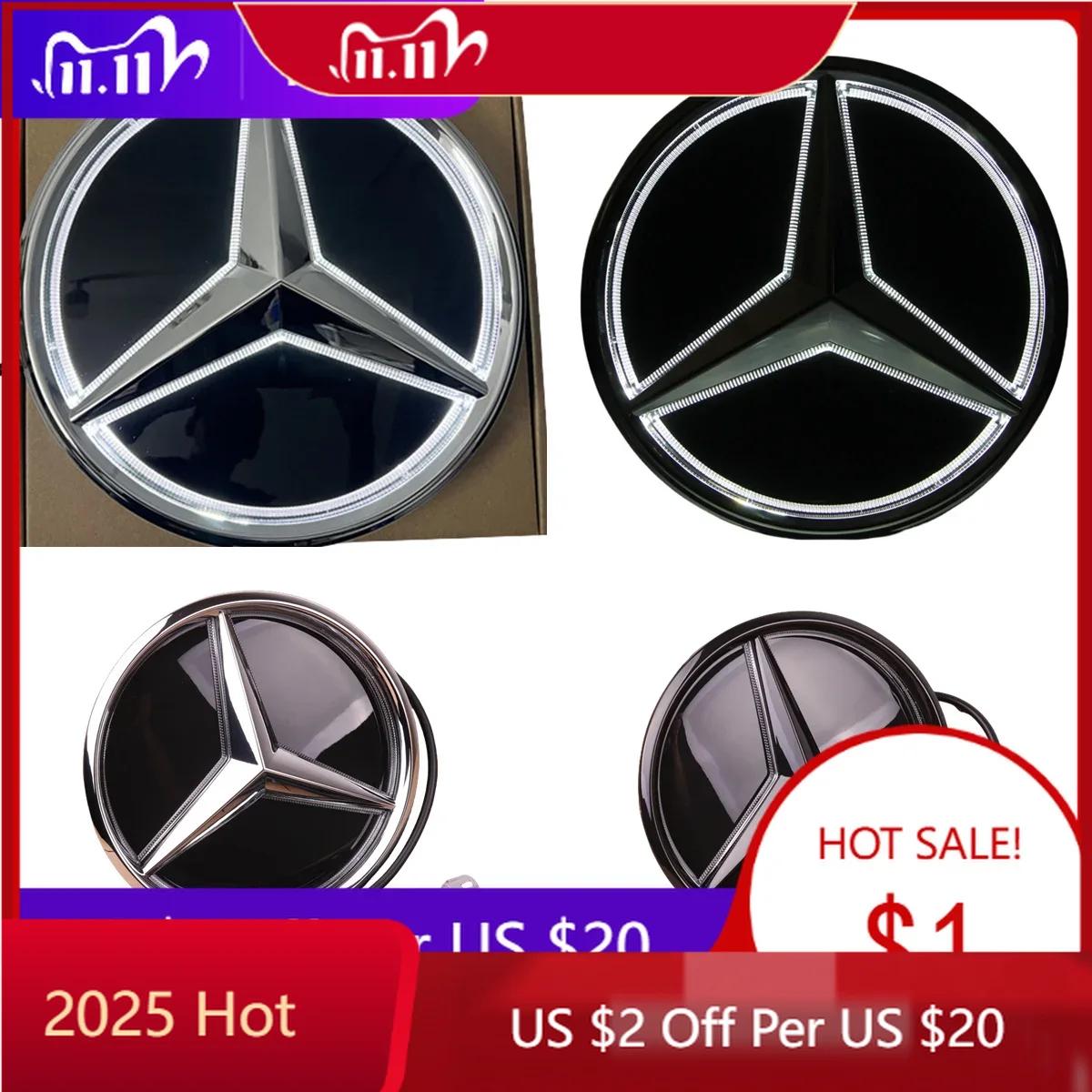 2025 Hot For Mercedes Benz for Mercedes Benz led Emblem Light Front Grilled Star Illuminated Logo White Blue Red badge W204 W20 silver