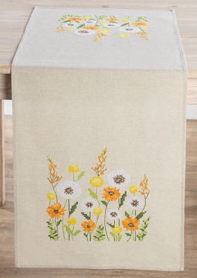 Chemin de table à broder "étoile de Noël rouge/doré"