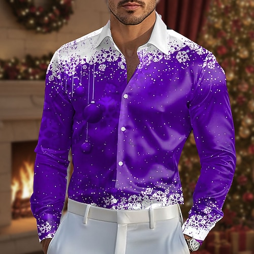 Natale Per uomo Fiocco di neve Camicia Designer Manica Lunga Resort Moda Casual Natale Feste Inverno Primavera Autunno Collo ripiegato Colletto a Camicia Cardigan con Bottoni Blu Rosso Viola Verde
