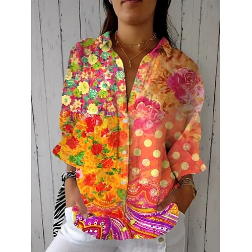 Per donna Camicia Camicia casual Camicia da Spiaggia Bottoni Stampato Floreale Grafico Elegante Casual Manica Lunga Colletto a Camicia Top Regolari Quotidiano Lavoro Ferie Rosa Arancione Estate
