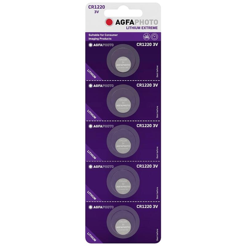 Agfaphoto Lithiumbatterie Cr1220, 3 V Extreme, Einzelhandelsblister (5er-Pack)