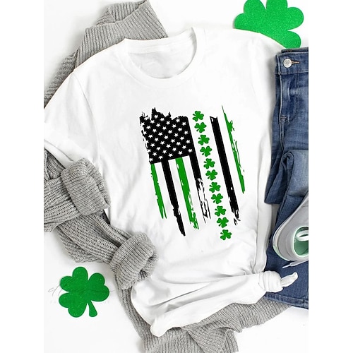 Maglietta Donna St. Patrick's Day 100% Cotone St. Patrick's Day Casual Quotidiana Maniche Corte Nera Estate