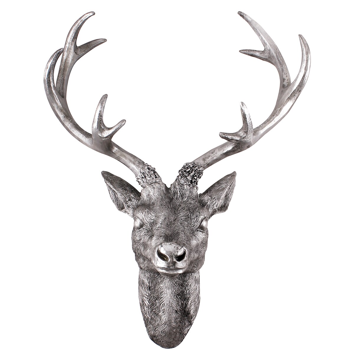 XXL Hirschgeweih Hirschkopf Geweih 10-Ender Silber Optik 48x32x61cm