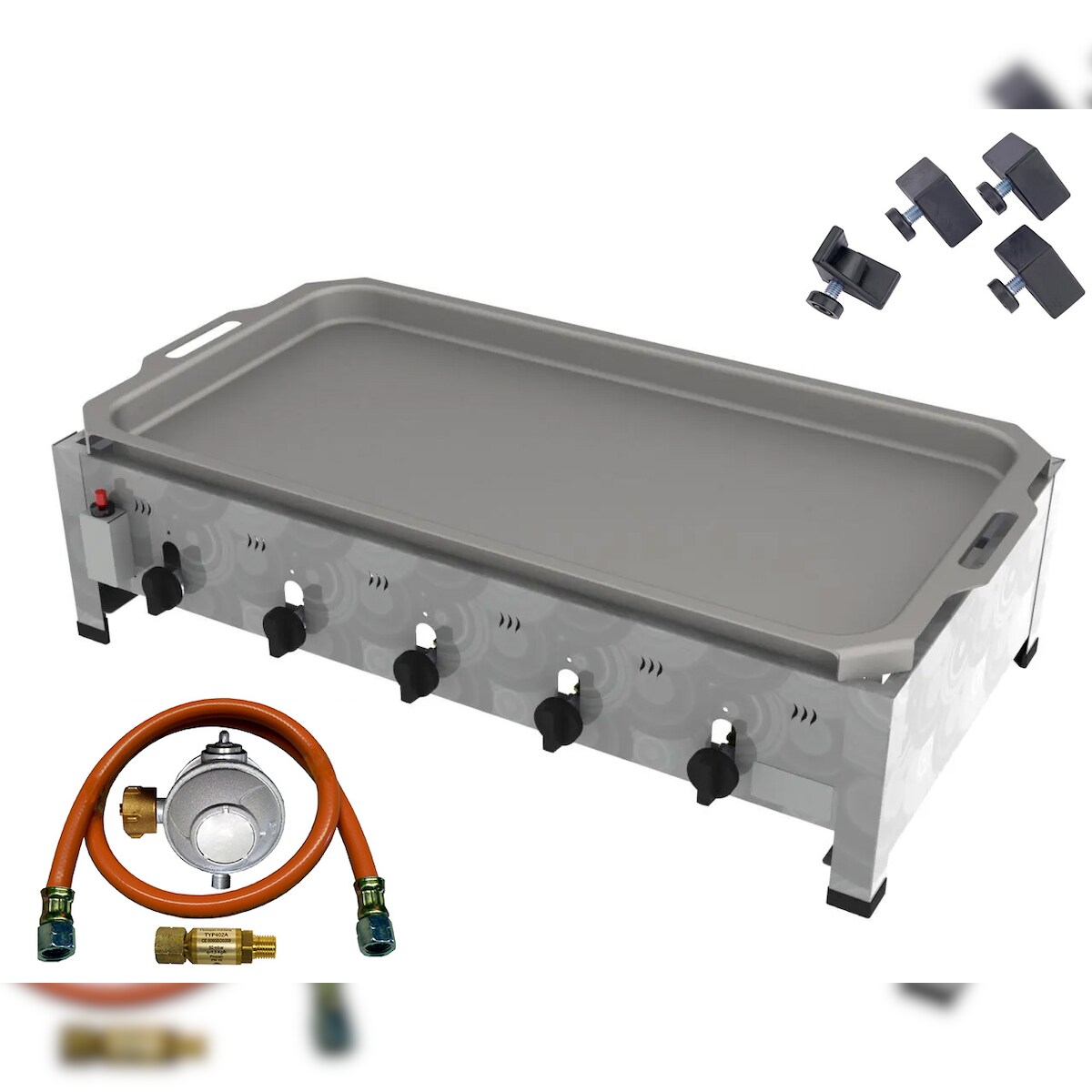 ChattenGlut ChattenTec Professional doppelwandiger Gastrobräter 5-flammig Tischgerät 20 kW, Flüssiggas 980x530x280 mm mit Gewerberegler und Pfanne