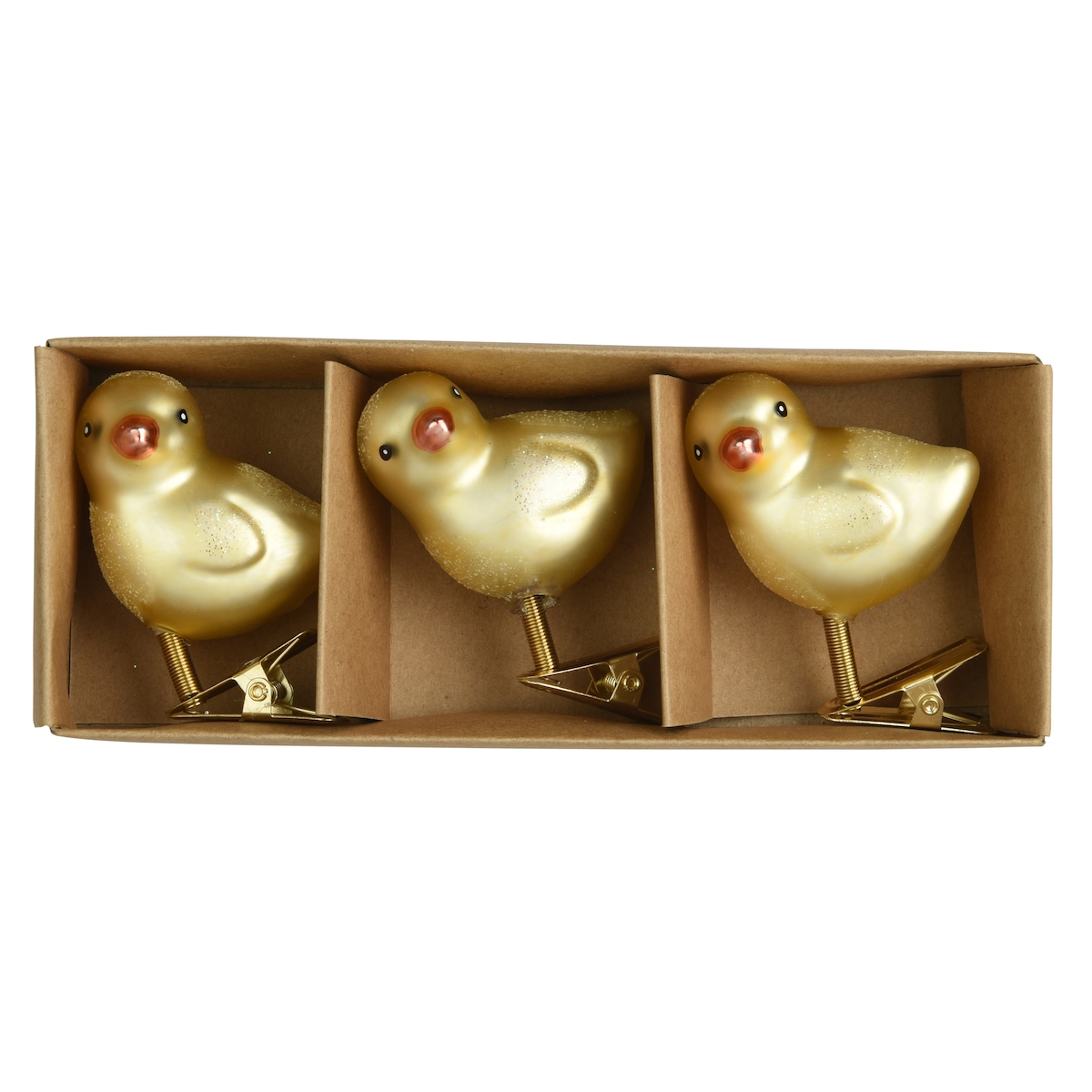 Decoris 3 Deko Küken mit Clip 5,5cm Glas - Osterküken auf Klammer zum Dekorieren & Basteln Dekoklammern Osterschmuck Osterdeko Frühlingsdeko Goldgelb
