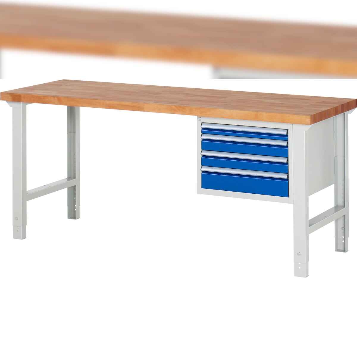 PROREGAL Werkbank Serie 7000 - Modell 7132 | HxBxT 79-114x200x70cm | 4x Schublade | Schubladenmaße 1x60 + 2x90 + 1x120mm