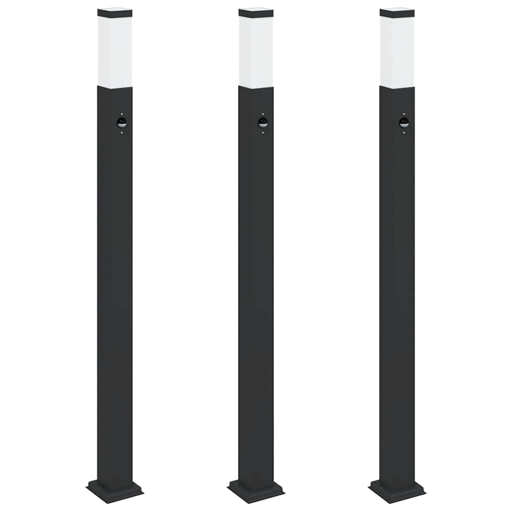 vidaXL Pollerleuchten mit Sensor 3 Stk. 120 cm Schwarz IP44