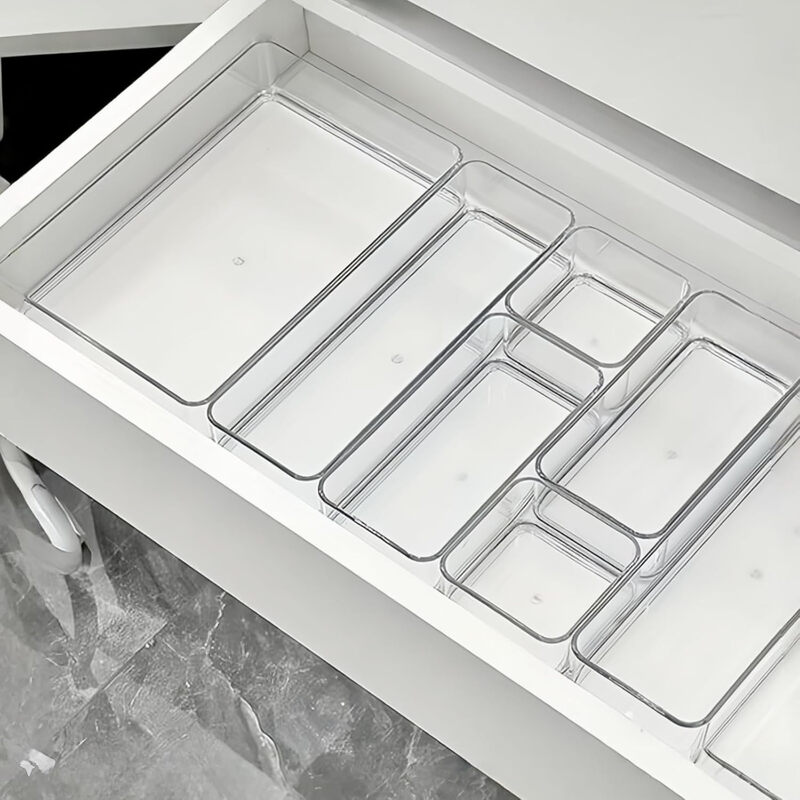 11Pieces Drawer Organisers, 4 Sizes, Clear Plastic Drawer Organisers, Containers for Bathroom and Vanity Organization, Kitchen Utensils, Makeup