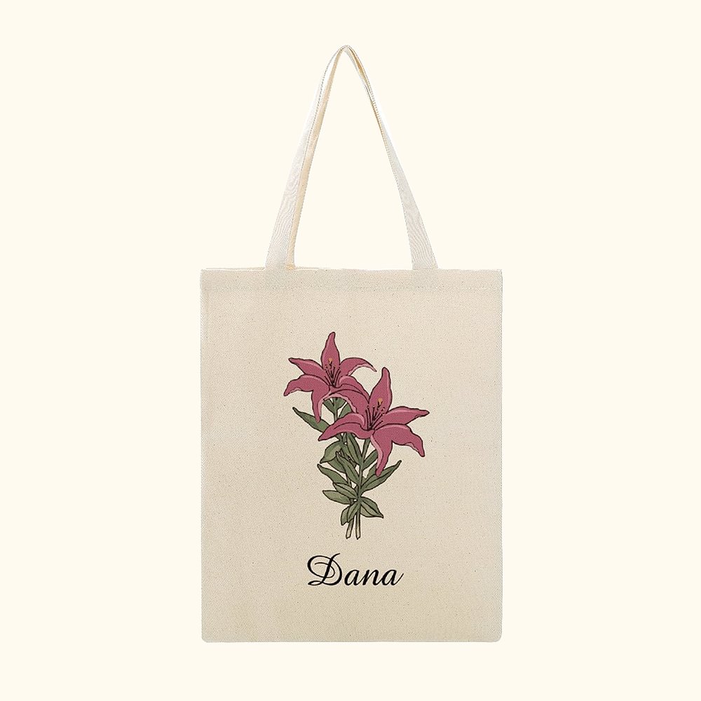Borsa in tela personalizzata con nome e fiore di nascita Regalo di compleanno per la festa della mamma di grande capacità per le donne