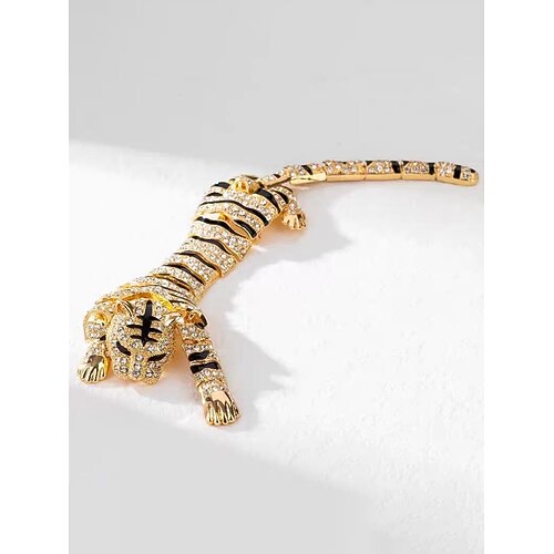 Spilla da uomo a forma di tigre in lega, disponibile nei colori oro e argento, impreziosita da cristalli, accessorio elegante per matrimoni e cene