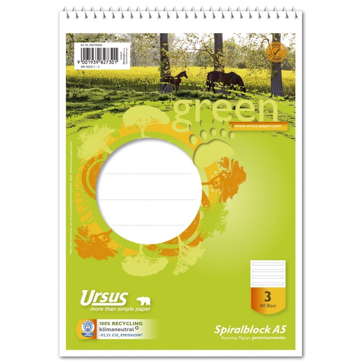 Spiralblock LIN3 A5 40 Blatt 70g/qm 14 Doppellinien farbig
