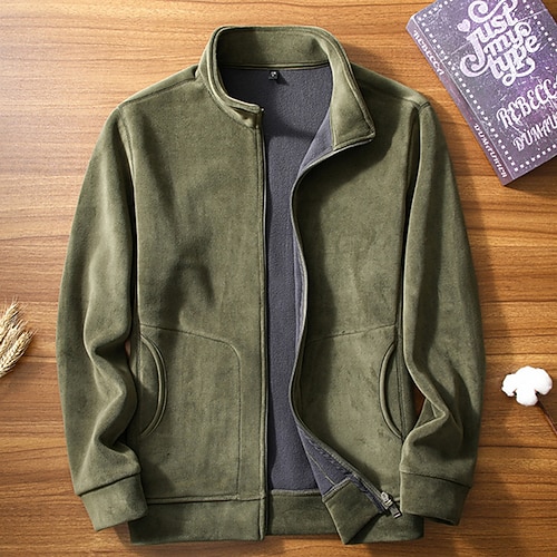 Per uomo Maglia Velluto a coste Felpa con zip intera Aalbicocca Rosso bordeaux Nero Bianco Verde chiaro Colletto Mao Semplice Testurizzato Sport Outdoor Casuale Quotidiano Streetwear Cool