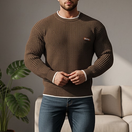 Per uomo Maglione Maglione a maglia A Coste Maglia Top Regolari Lavorato a maglia Semplice Girocollo Moda Essenziale Vacanza Abbigliamento quotidiano Abbigliamento Autunno Inverno Blu marino Marrone