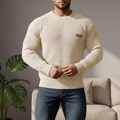 Per uomo Maglione Maglione a maglia A nido d'ape Maglia Top Regolari Lavorato a maglia Semplice Girocollo Moda Essenziale Vacanza Abbigliamento quotidiano Abbigliamento Autunno Inverno Blu marino Blu