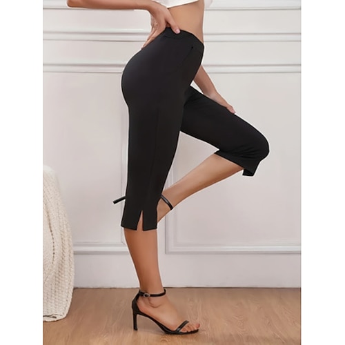 Per donna Pantaloni capri Chinos Leggings Moda Streetwear Casual Lunghezza intera Vita media Semplice Tasca Fascia Elastica Comodo Comodità Elasticizzato Quotidiano All'aperto Vacanza Nero Estate