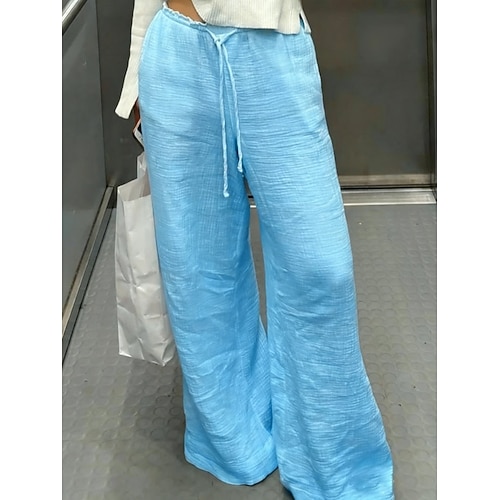 Per donna Pantaloni Pantaloni Estivi Pantaloni Larghi Pantaloni casual Vacanza Moda Essenziale Lunghezza intera Vita media Coulisse Tasca Gamba larga Comodità Traspirabilità Morbido Inelastico