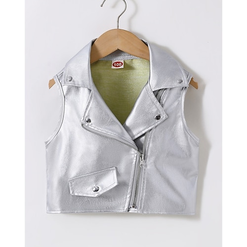 Bambini Ragazze Giacca in pelle nera Giacca di pelle Tinta unica Moda Cerniera Tasca All'aperto Cappotto Capispalla Dai 4 anni in su Autunno Argento Nero Rosa
