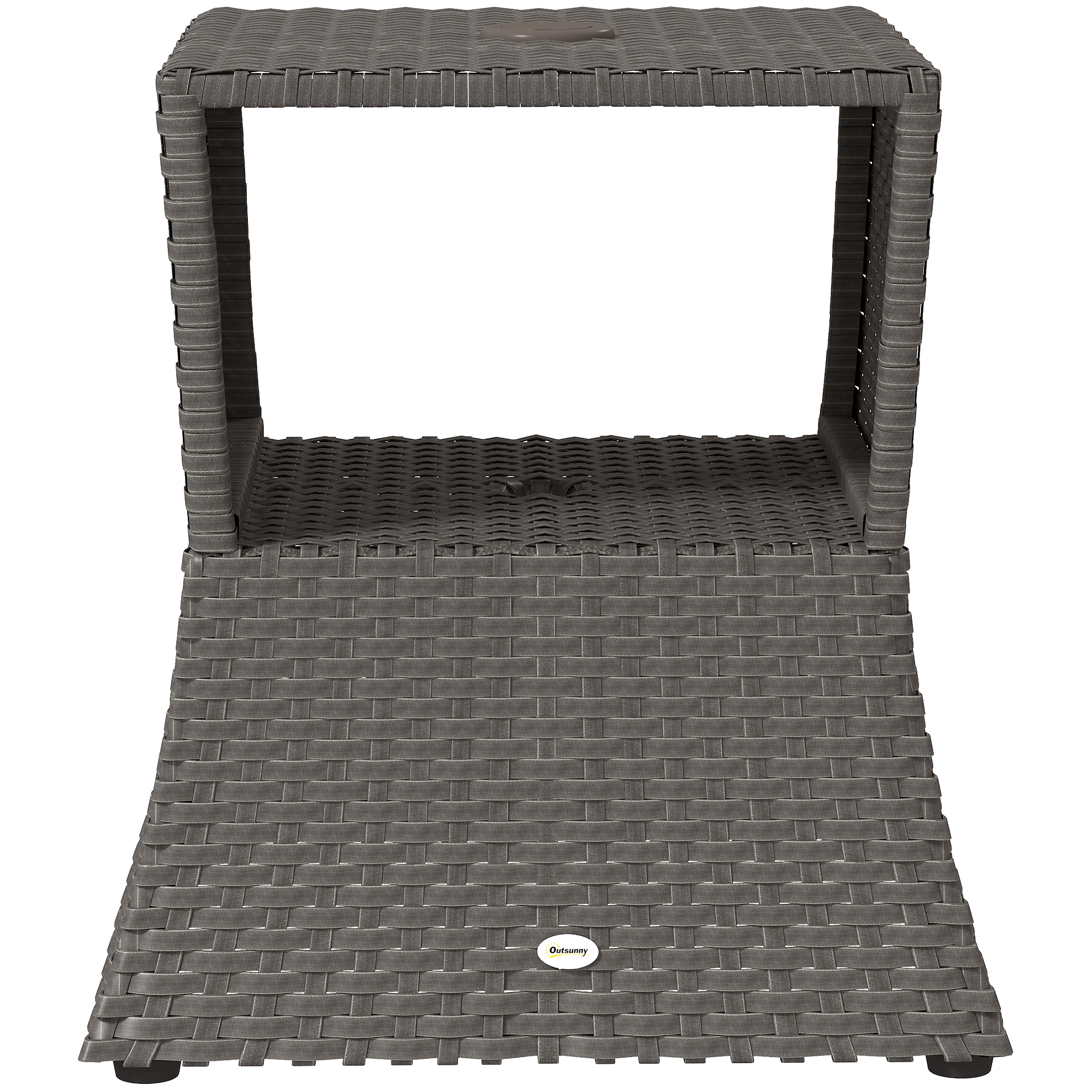 Outsunny Rattan Outdoor Coffee Table, Wicker Garden Patio Bistro Side Table with Umbrella Hole and Storage Space, Dark Grey