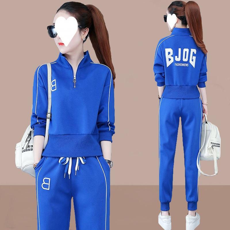 Casual Sportswear Suit for Women, Spring and Autumn High-waisted Stand-up Collar Sweatshirt, Stylish Large Size Long-sleeved Two-piece Set cm orange