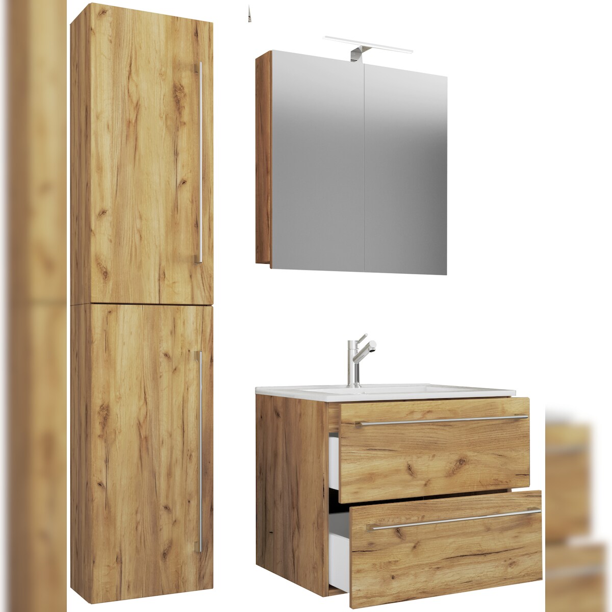 VCM Badmöbel Waschtisch Badinos Honig-Eiche H. 151 x B. 93 x T. 46 cm