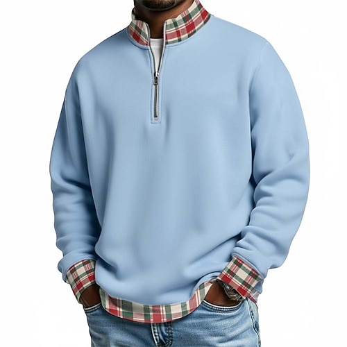 Per uomo Plaid Magliette Polo a Nido d'Ape Polo con zip Manica Lunga Magliette polo Colletto alla coreana Casual Scuola Athleisure Ferie Abbigliamento quotidiano Stampa 3D Polo con cerniera a un